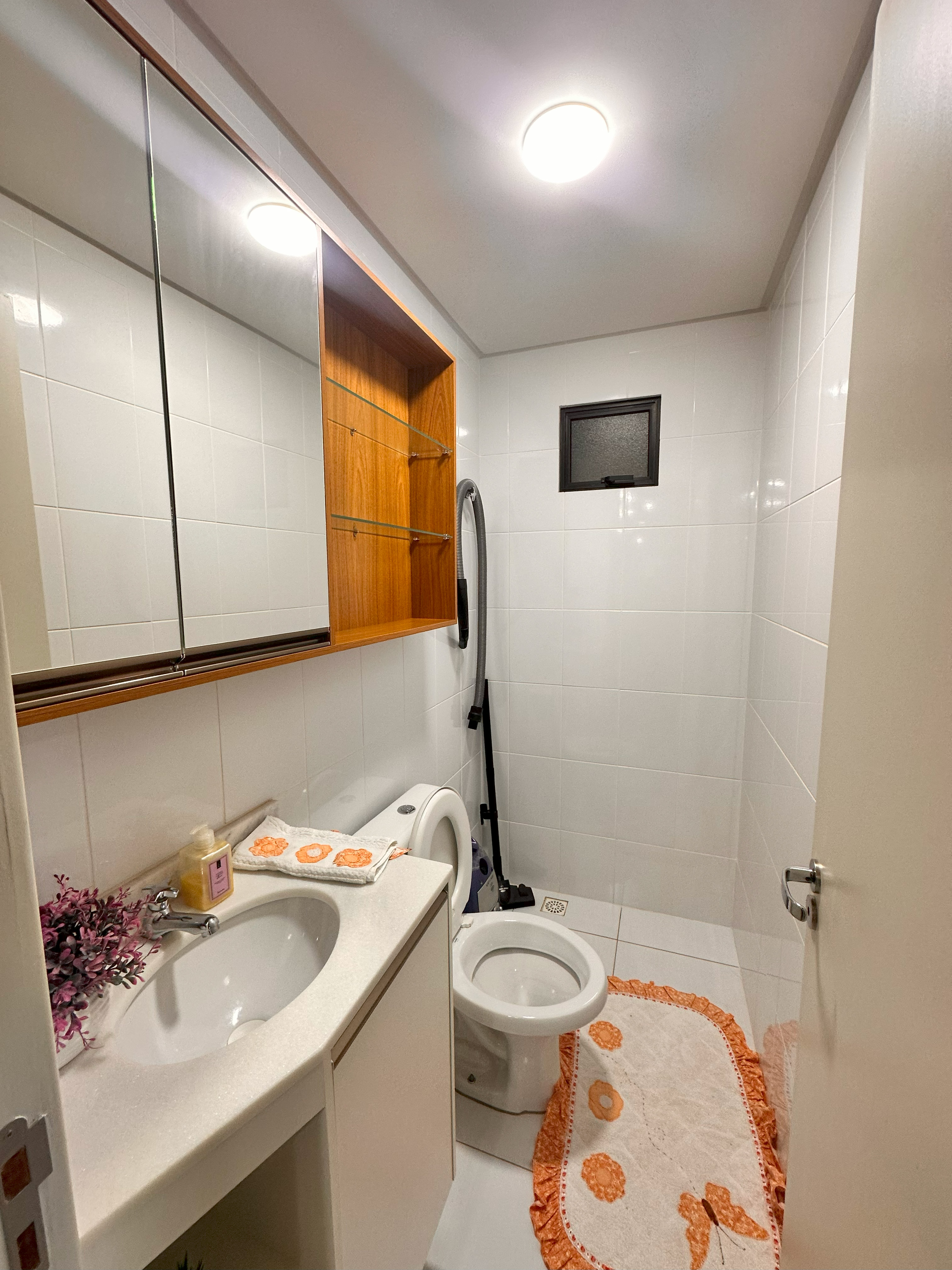 Banheiro social com box e armário