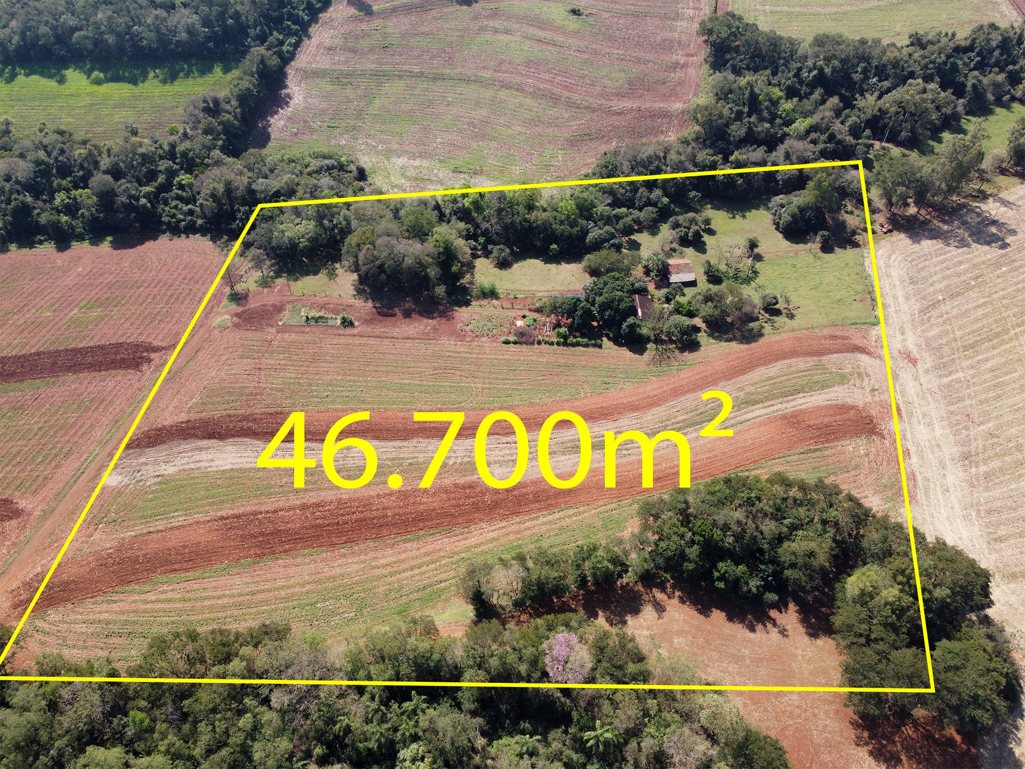 Planta 1 Alqueire, área com Casa e Rio que passa no limite da propriedade