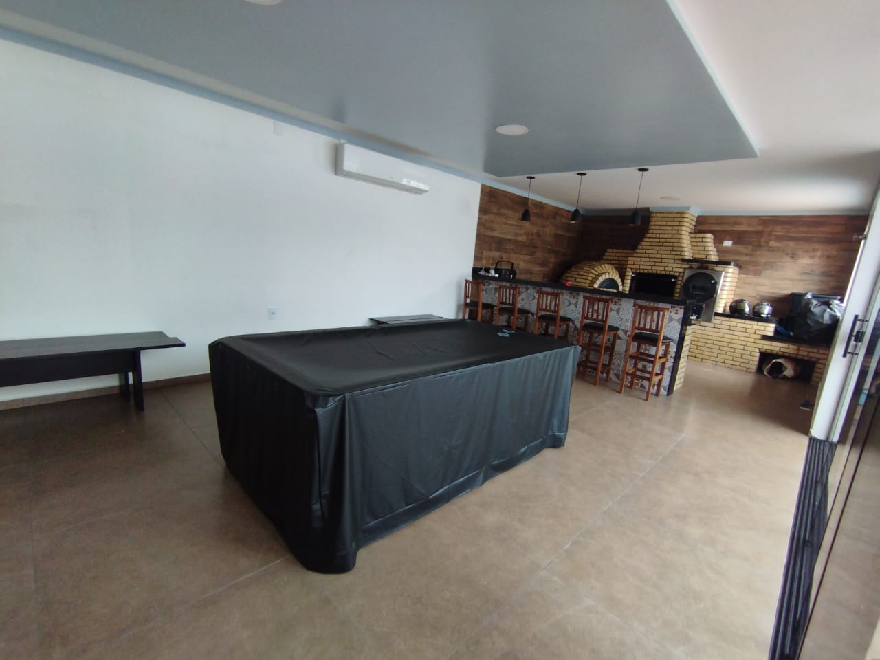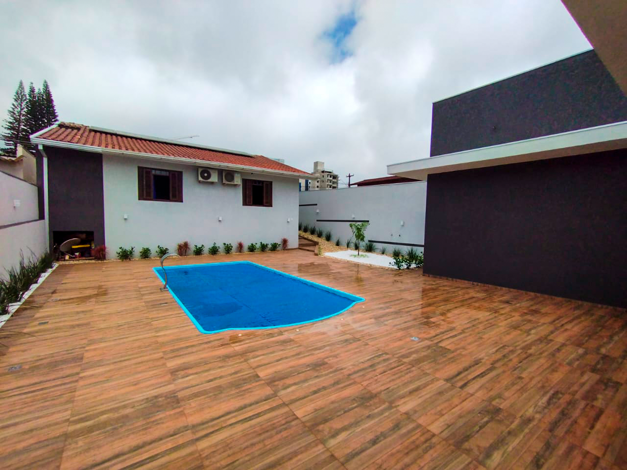 Casa duas suítes, um quarto, banheiro social, sala de estar, sala de jantar, escritório com lavabo, cozinha planejada e garagem para até 4 carros. Área de festa contendo forno de pizza, churrasqueira, forno a lenha, fogão de lenha. Piscina de 27.000 litros com aquecimento solar, lavanderia. Energia solar com 15 placas.
