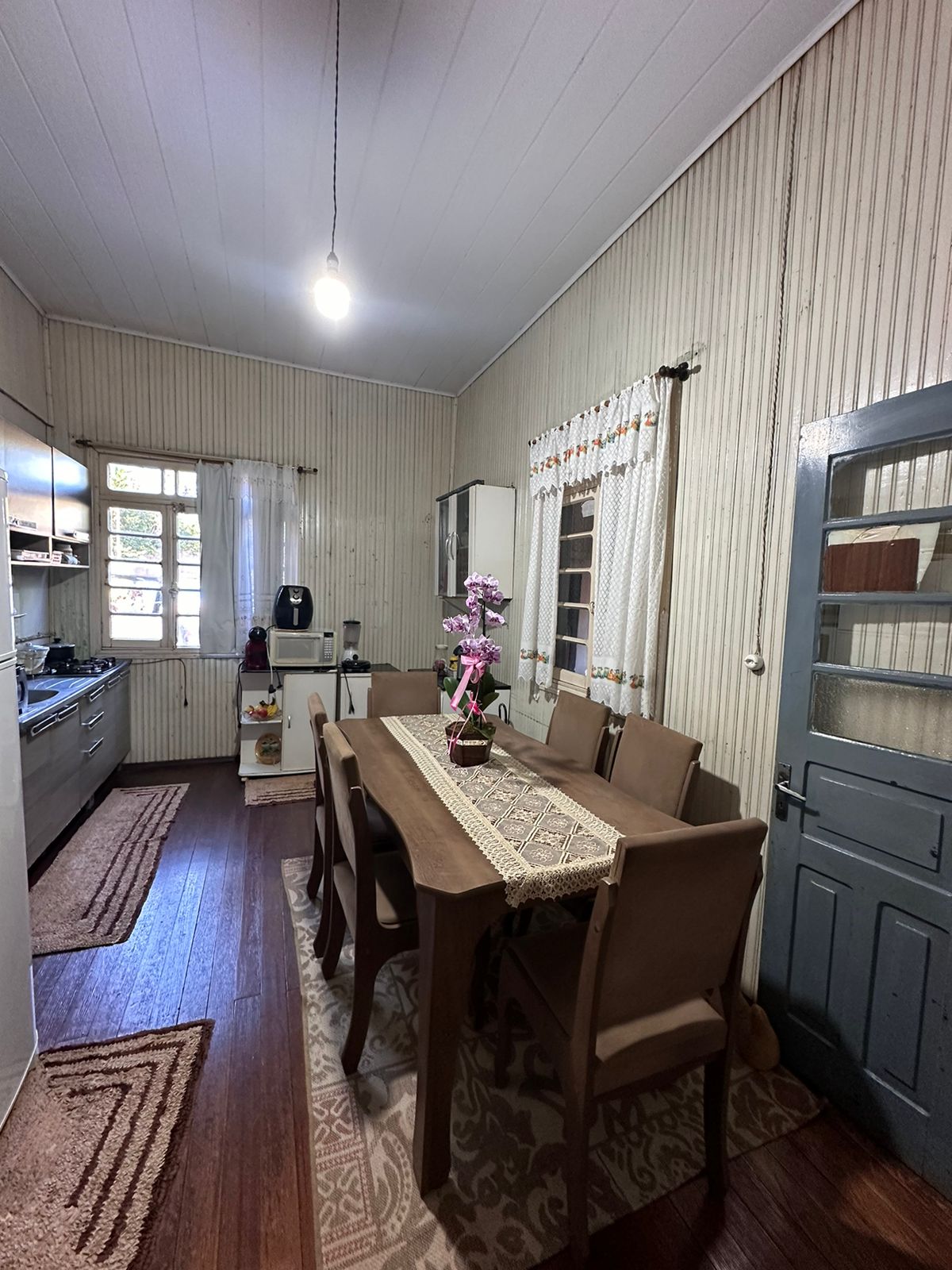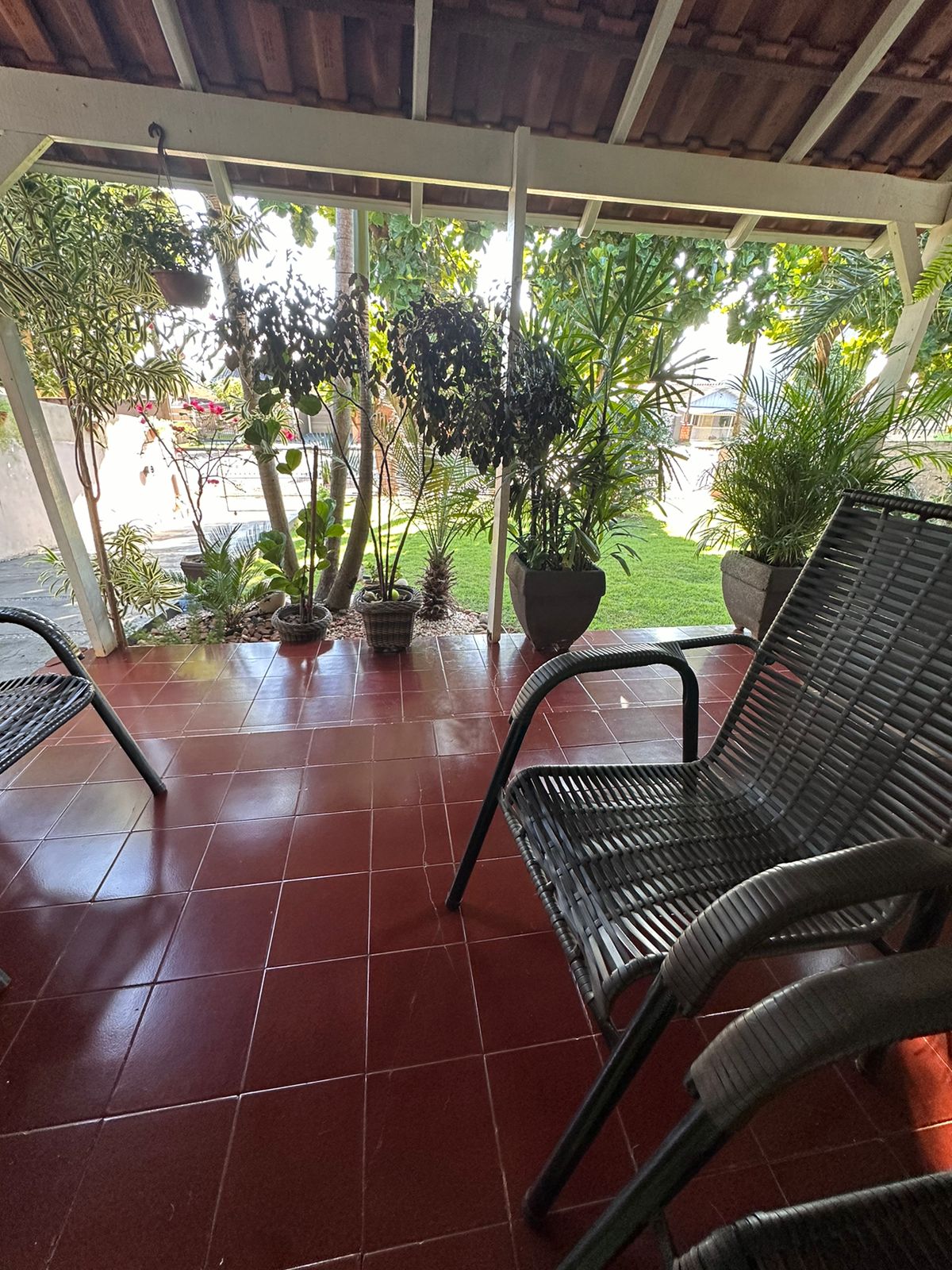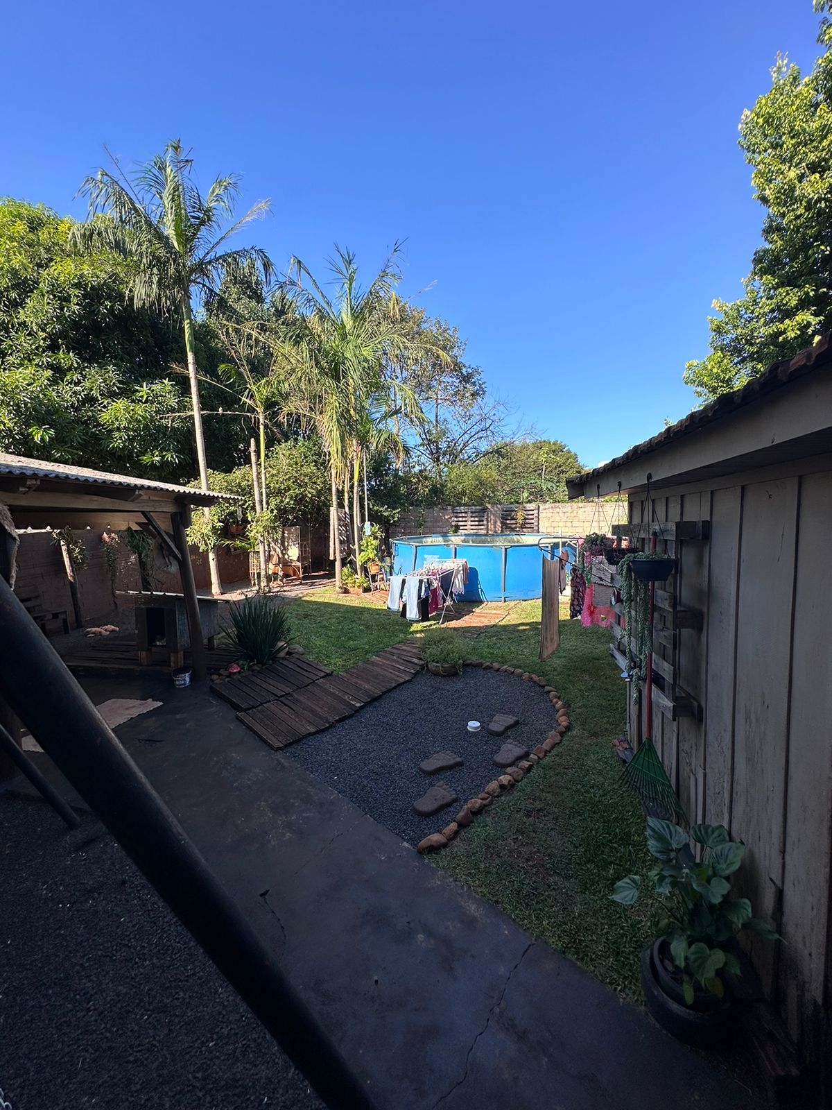 3 quartos, sala de estar, cozinha, lavanderia, garagem para 2 carros, churrasqueira.