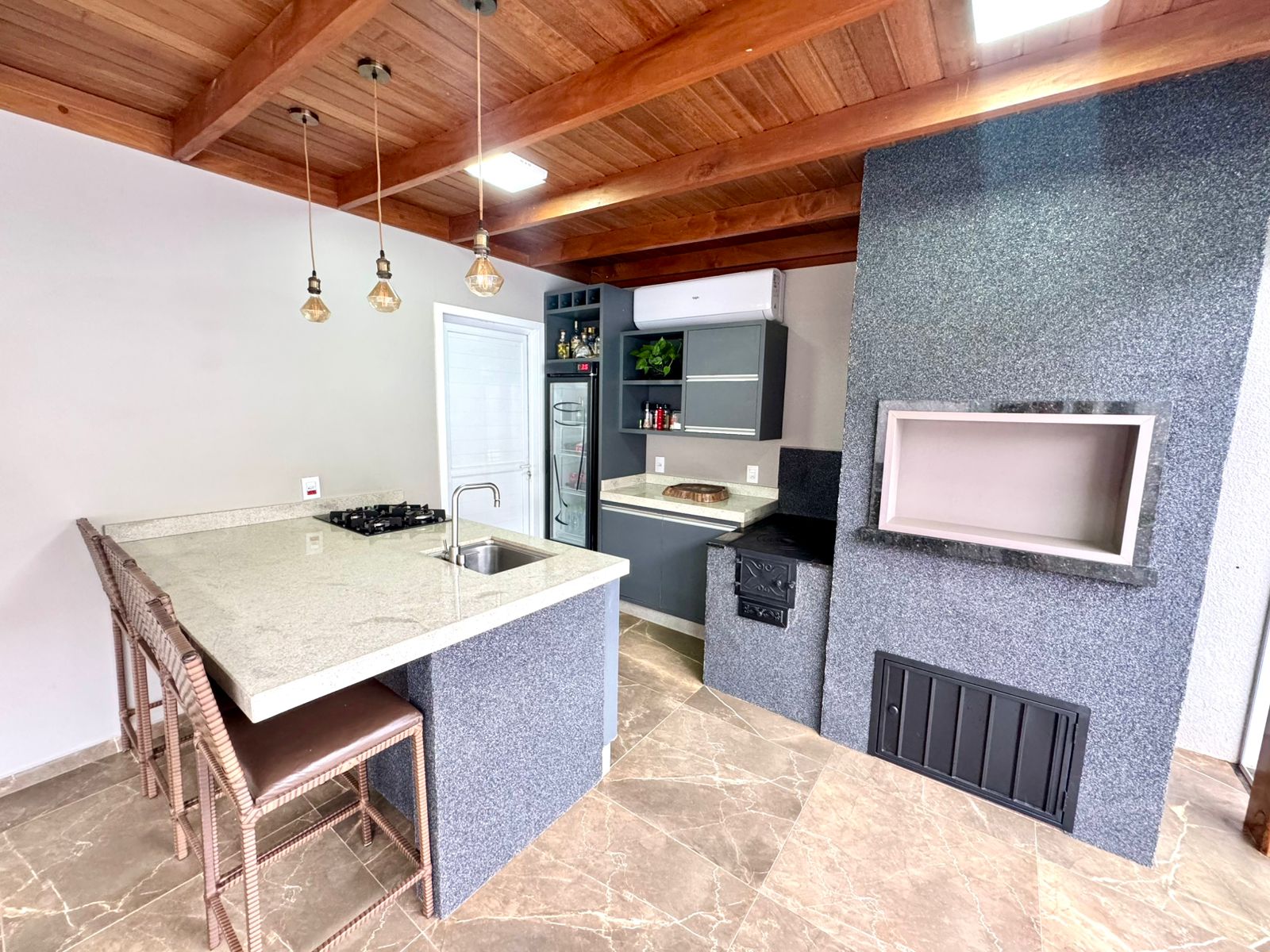 * Sala ampla e aconchegante * Cozinha gourmet integrada com sala de jantar * 3 quartos, sendo 1 suíte * Banheiro social * Lavabo * Lavanderia * Edícula * Piscina com aquecimento por trocador de calor * Paisagismo completo