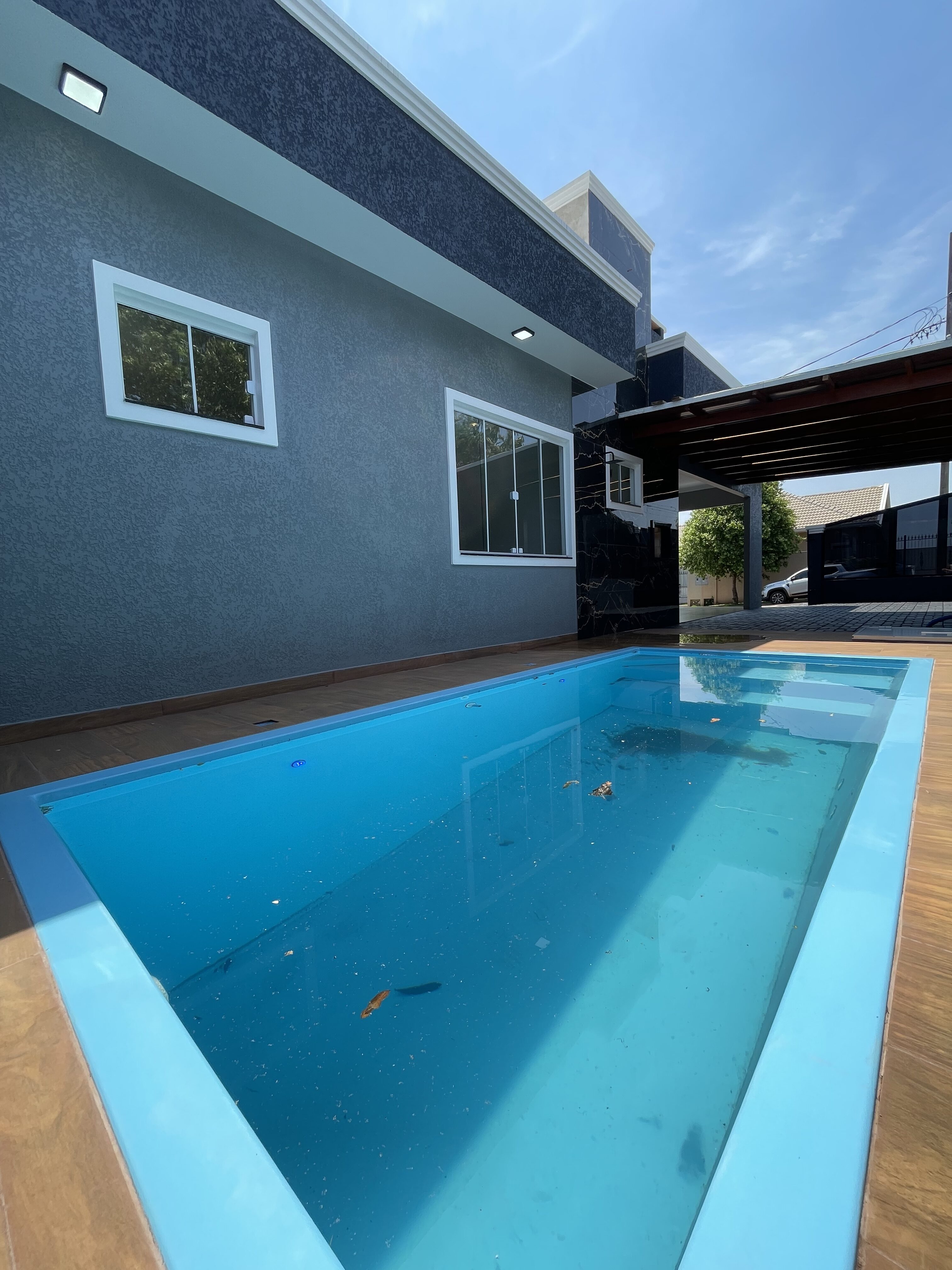 Rua Tocantins esquina com São Vicente Próximo ao lago municipal (400 mts) Casa com 100 mts² mais pergolado – 3 quartos (sendo 1 suíte) – Sala – Cozinha – Lavanderia – Banheiro social – Garagem – Área de festas – Piscina – Acabamento de primeira.