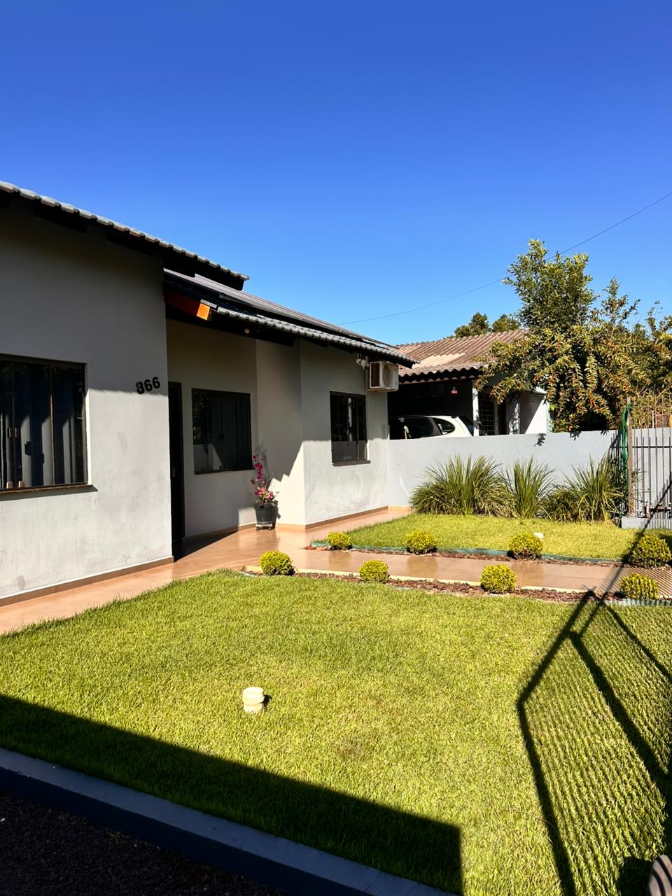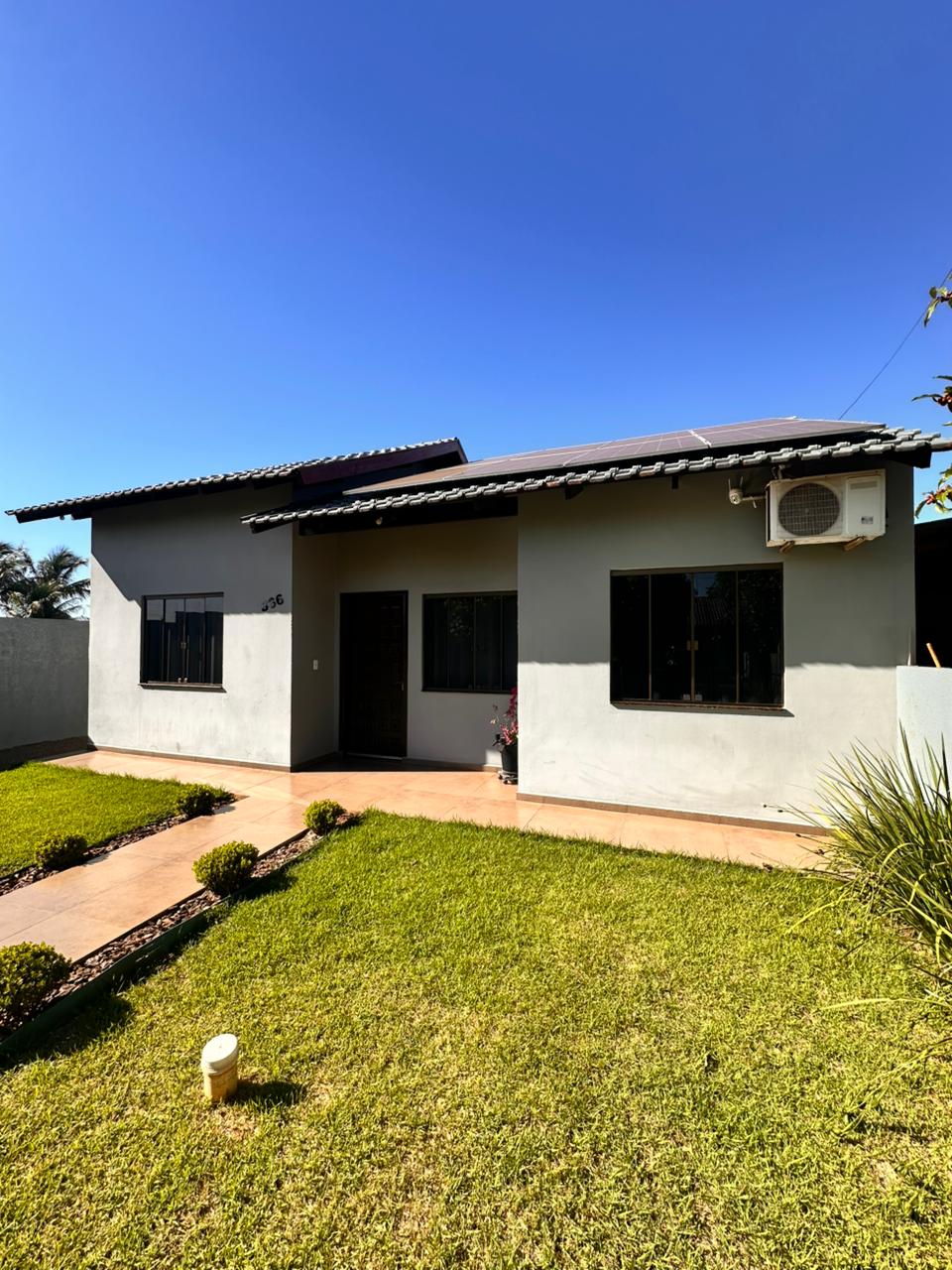 Casa ampla com aprox. 120m² de construção Terreno inteiro 12x30m  01 suíte + 02 quartos Sala de festas Placas solares