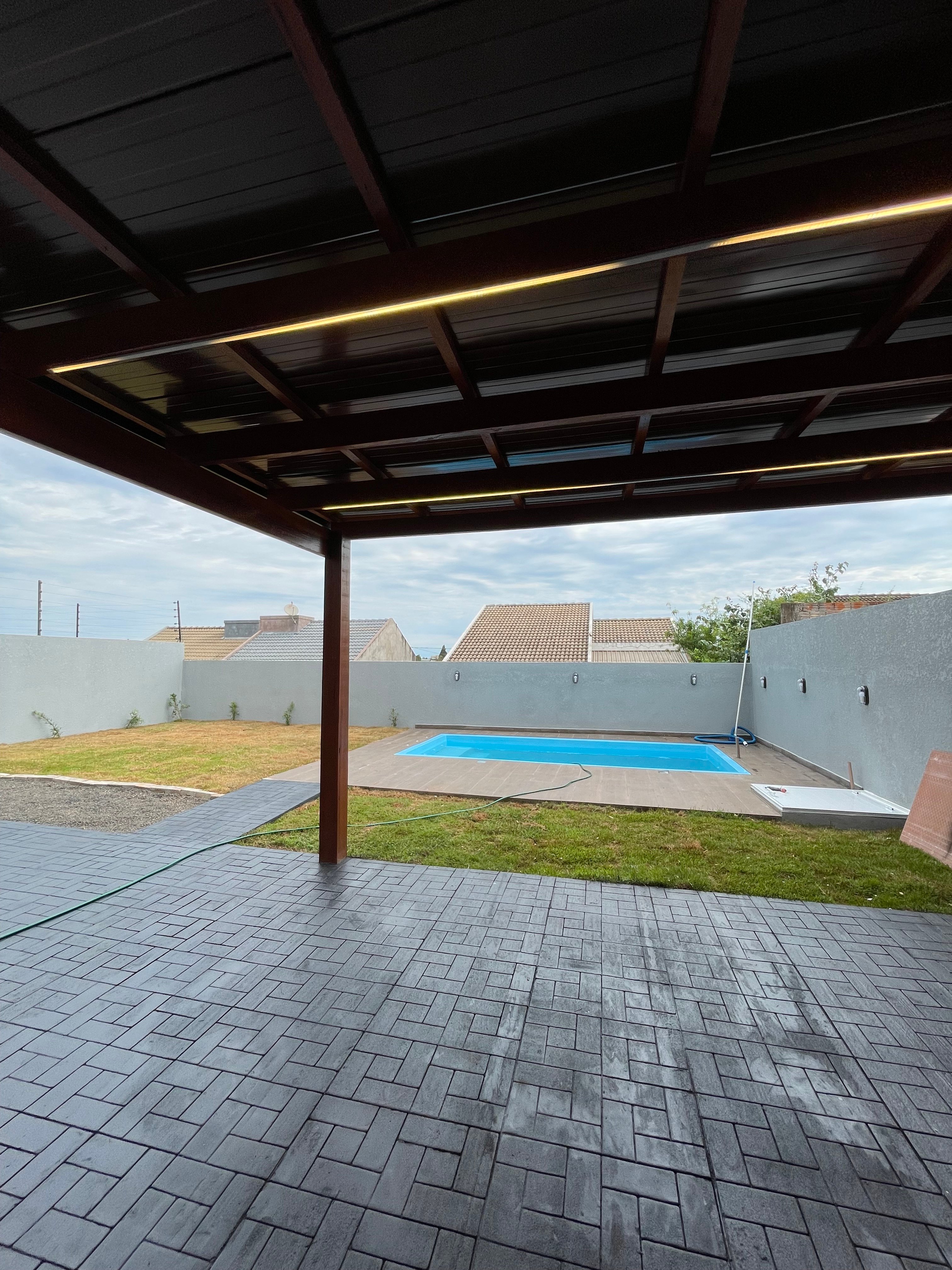 Terreno inteiro 12×29: 325 mts² Sobrado com aproximadamente 120 mts² – Sala com painel – Cozinha planejada – 3 quartos (sendo 2demi-suíte) – Lavanderia – Banheiro social – Área de festas – Garagem pergolado para 2 carros – Piscina