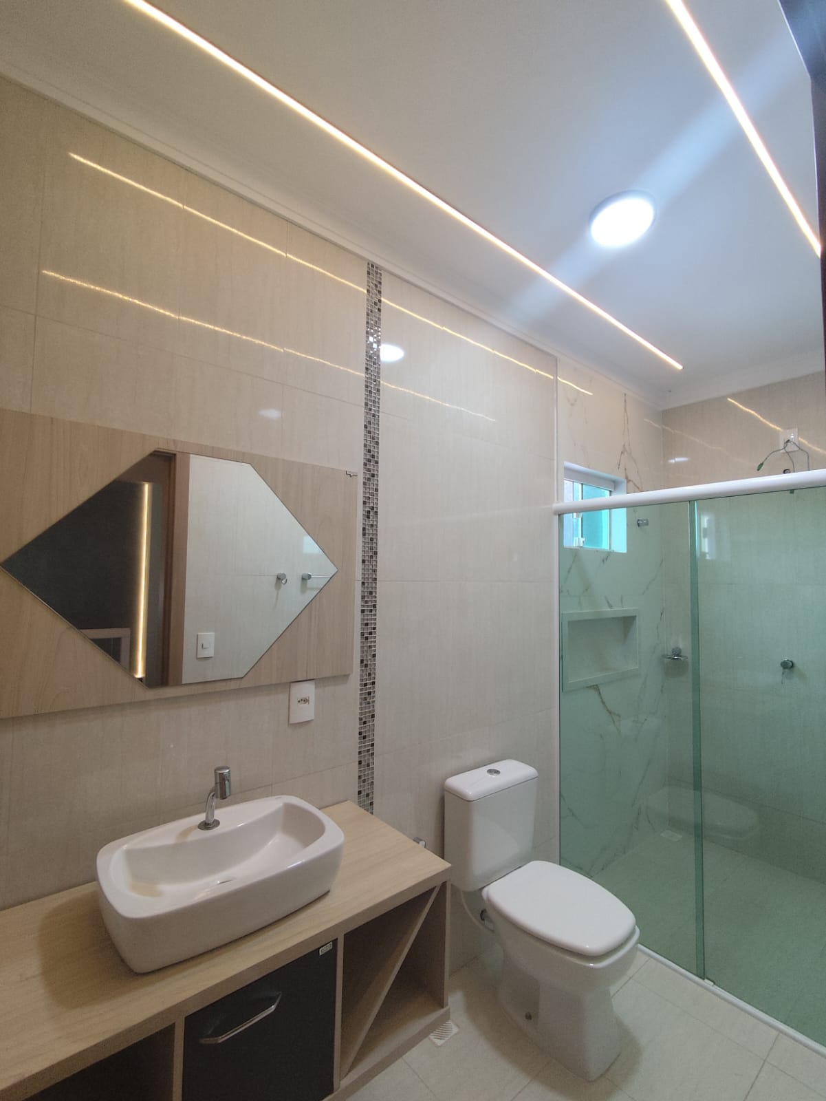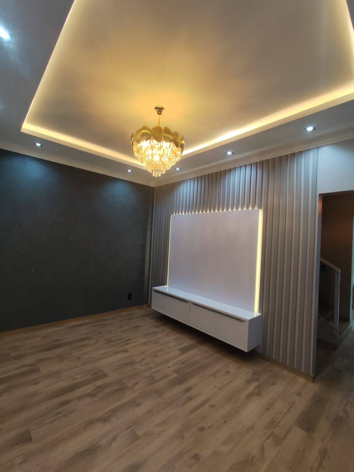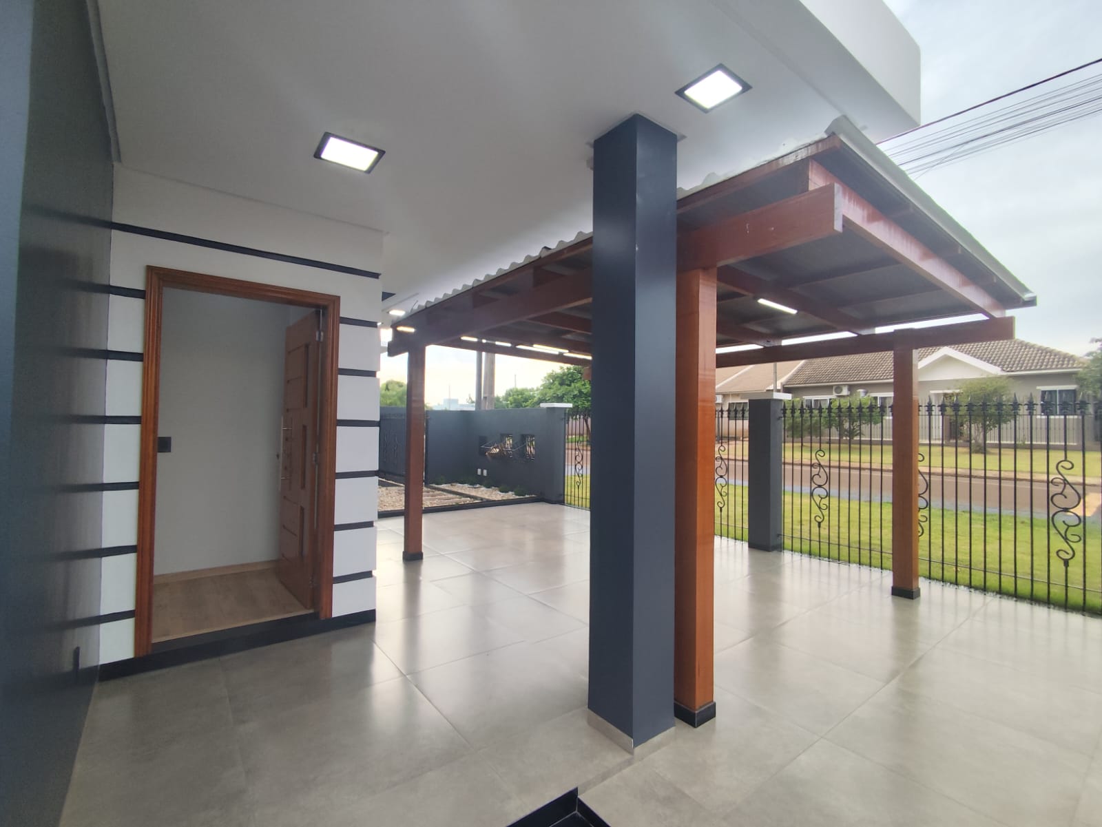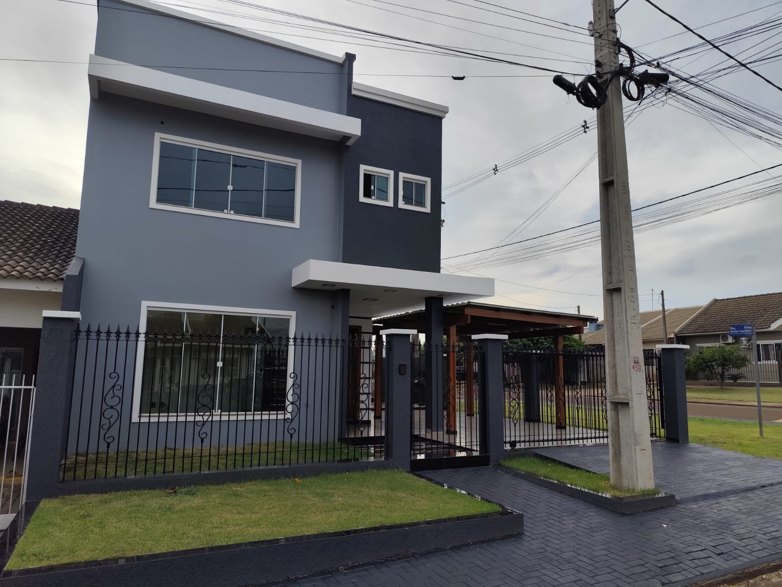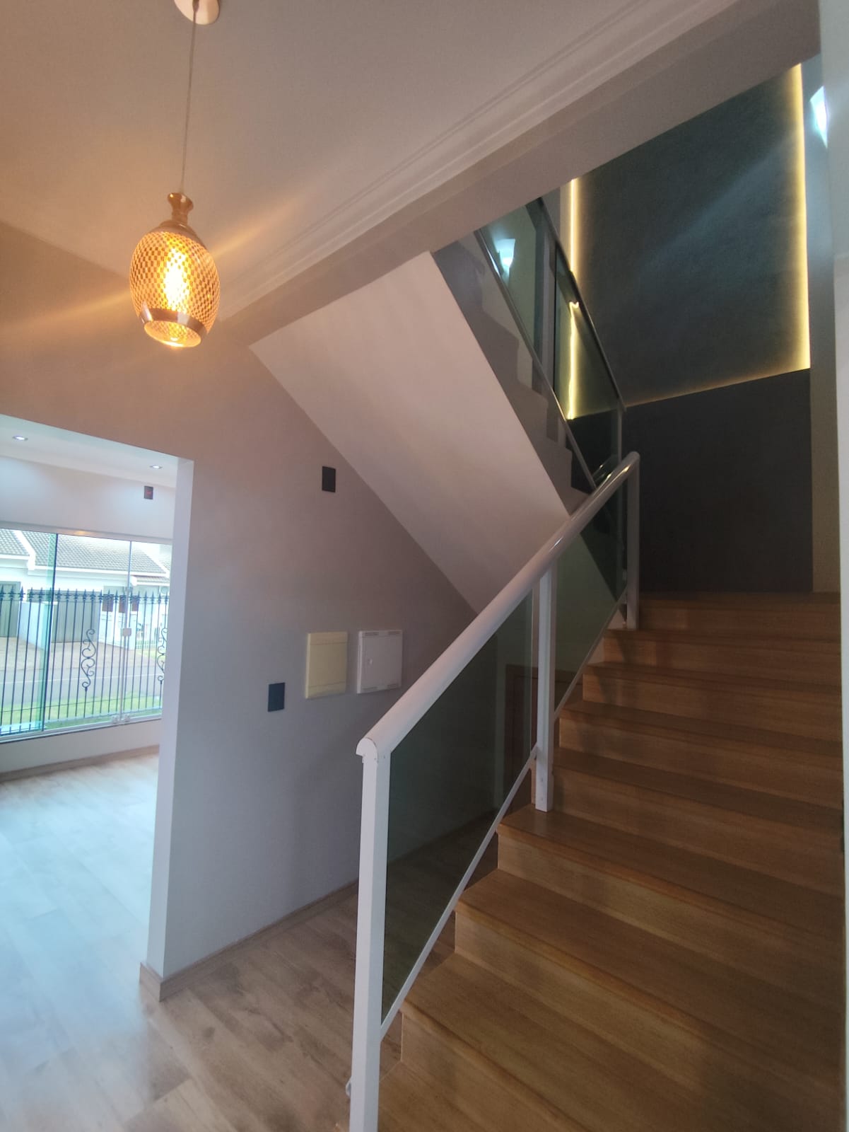 Parte superior: - 1 Suíte + 2 quartos; - Banheiro social; Parte térrea: - Sala de estar; - Lavabo; - Cozinha e sala de jantar integradas; - Garagem; - Lavanderia; - Churrasqueira.