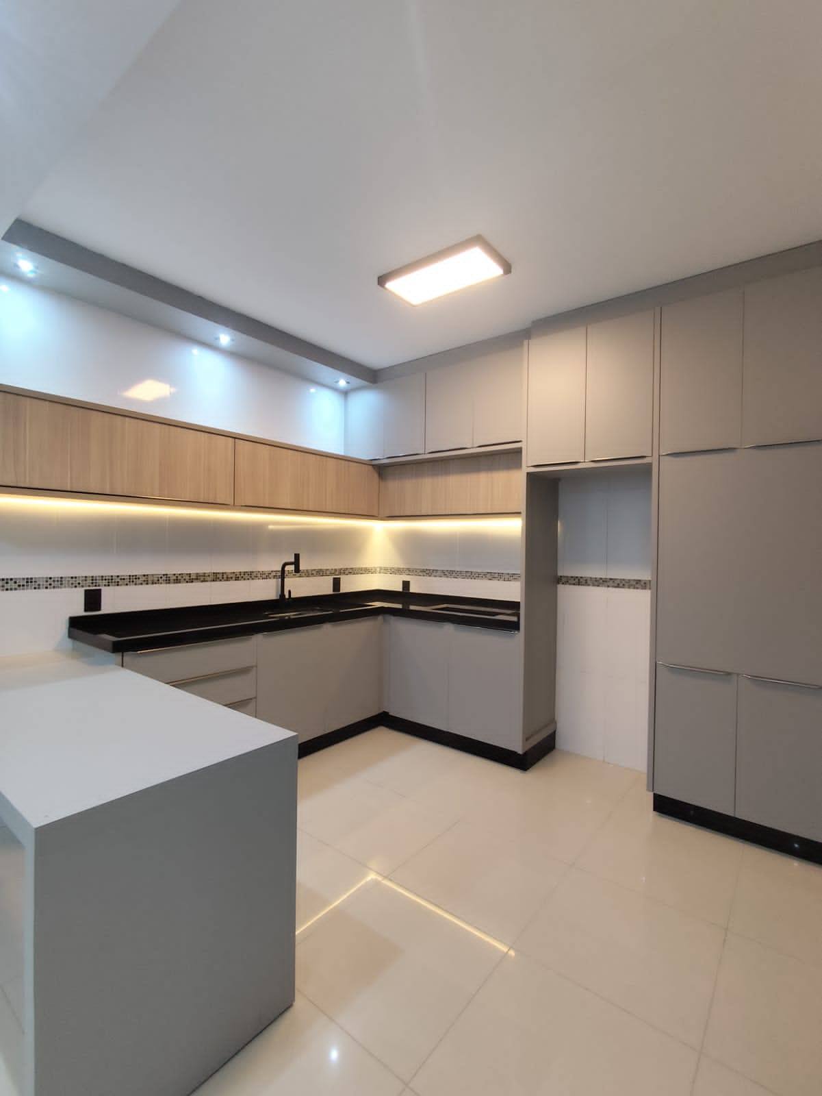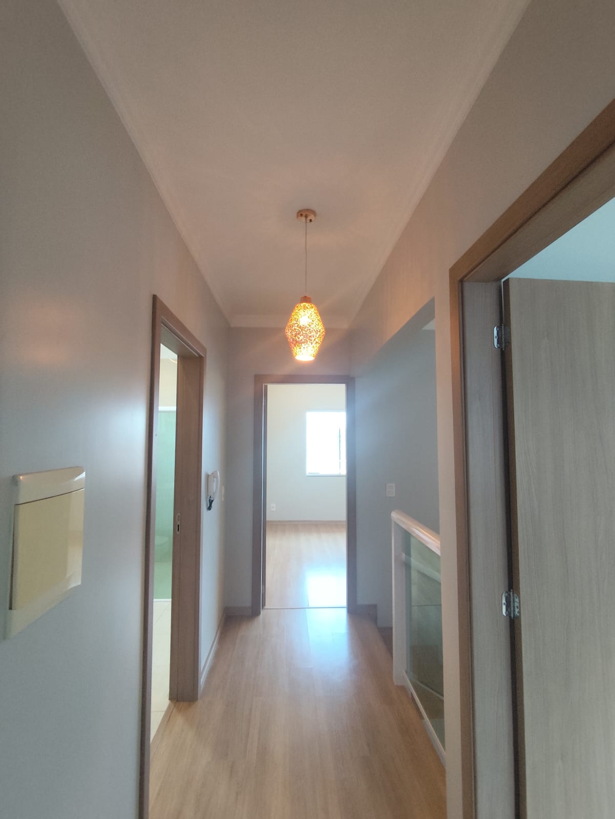 Parte superior:- 1 Suíte + 2 quartos;- Banheiro social;Parte térrea:- Sala de estar;- Lavabo;- Cozinha e sala de jantar integradas;- Garagem;- Lavanderia;- Churrasqueira.