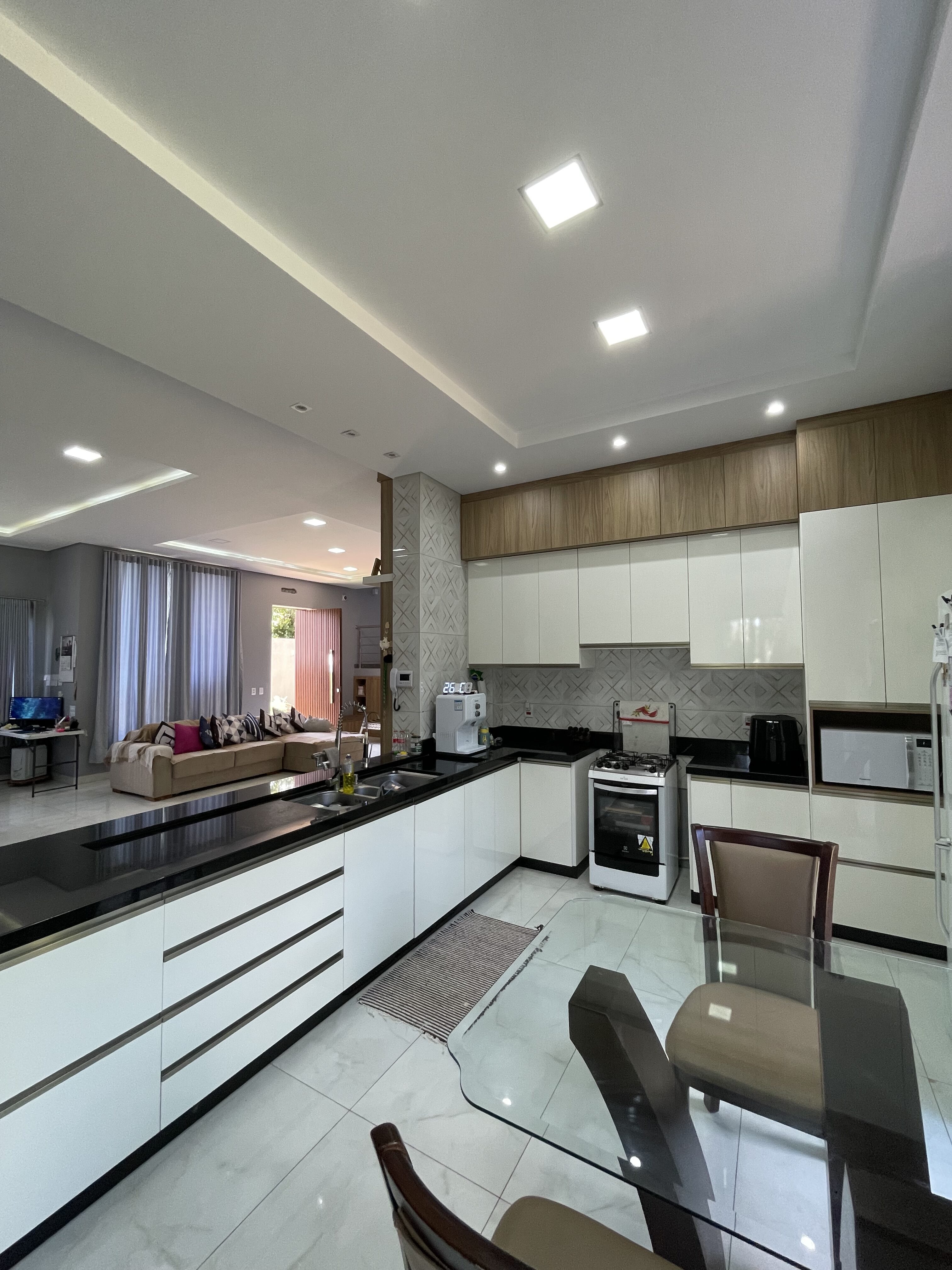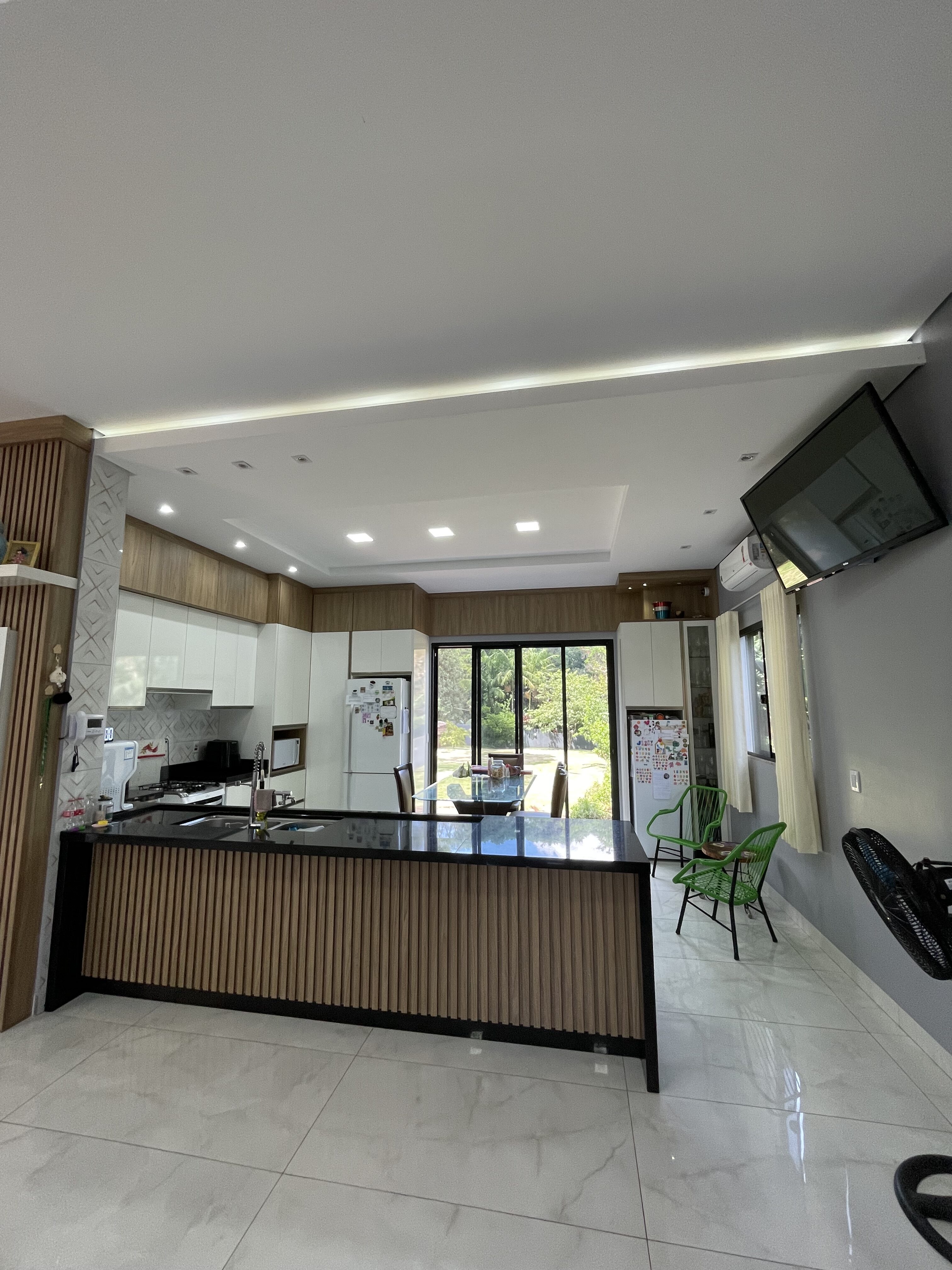 Sala, sala de jantar e cozinha ampla